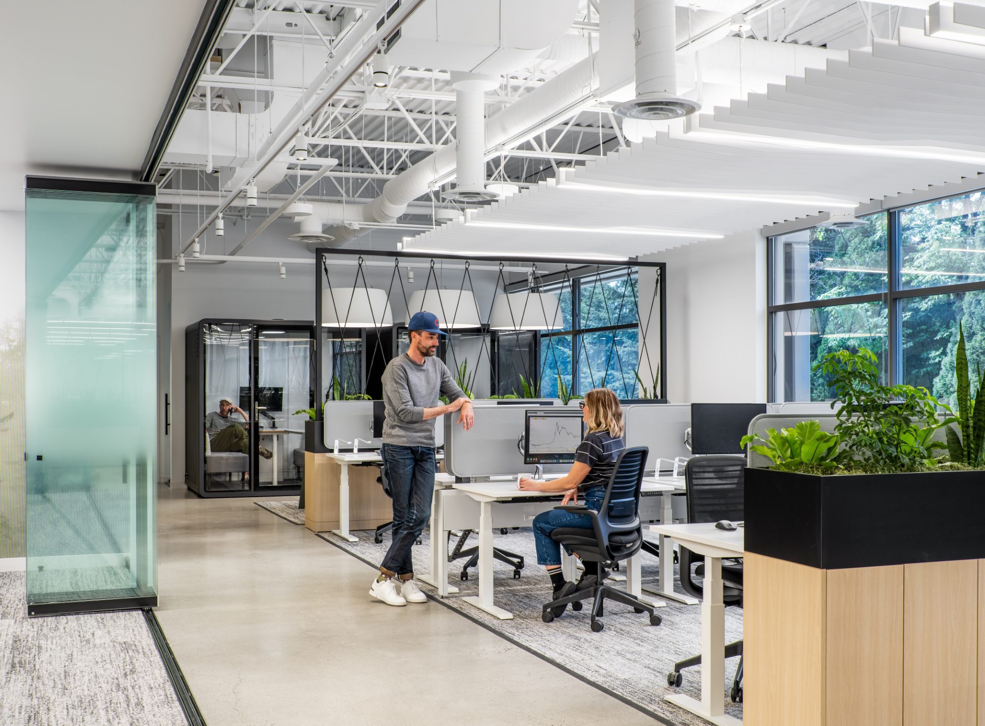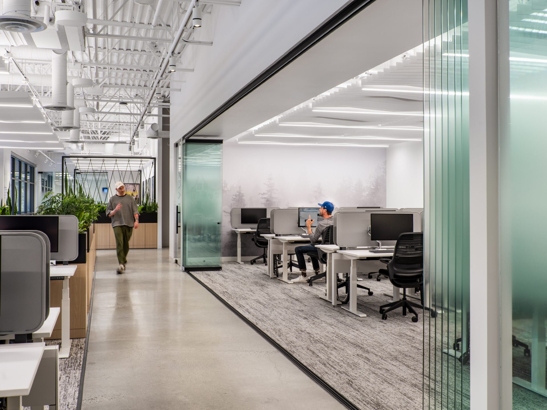 The transformed floor now operates as a fully integrated part of Arc'teryx's design campus. The flexible room configurations have proven particularly valuable, accommodating everything from focused individual work to cross-functional team sessions. The biophilic elements — cable planters, abundant greenery, views into the treeline — reinforce the connection to the natural world that sits at the core of the Arc'teryx brand.