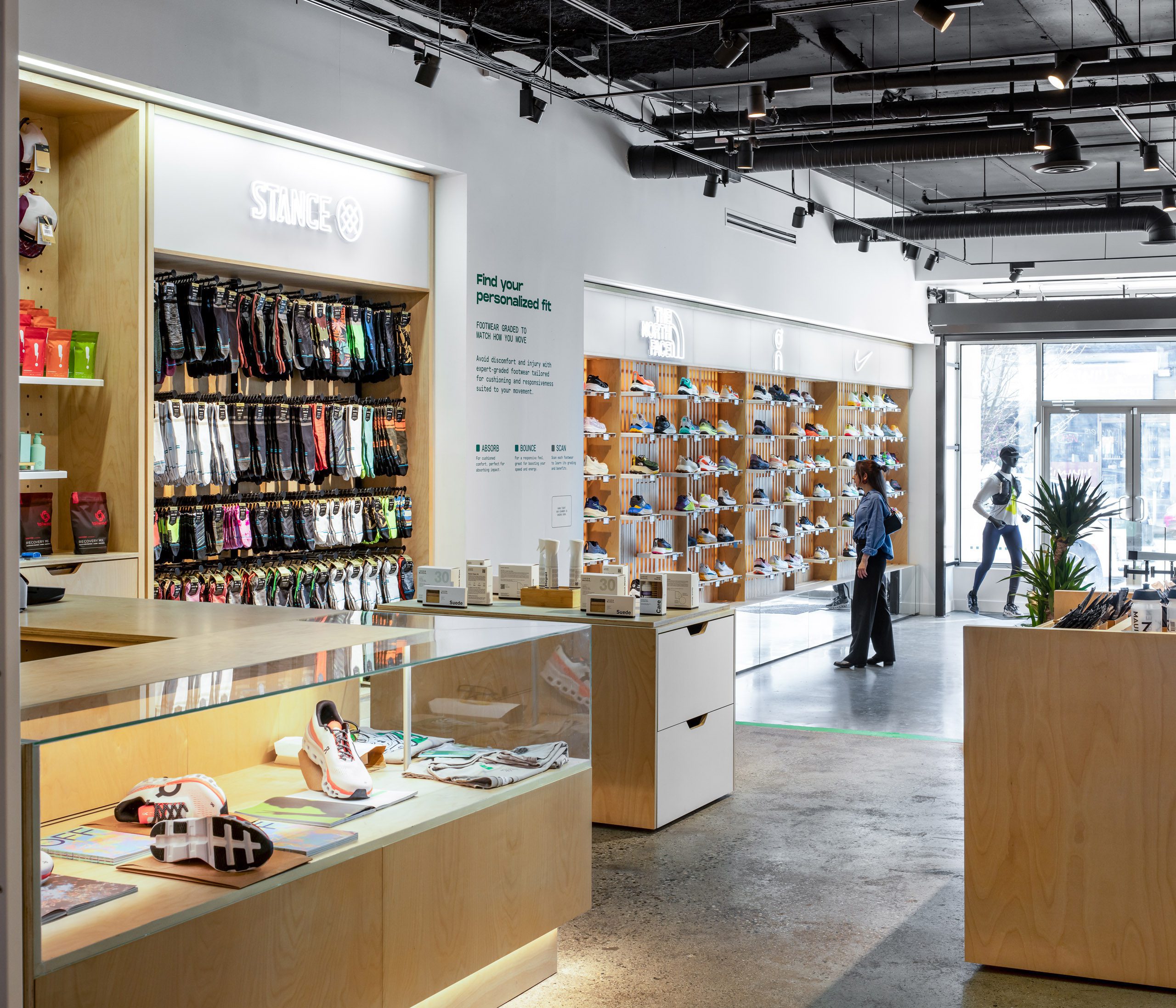 Run As You Are redefines the running experience by combining retail, diagnostics, training, and community-building in one unified space. An evolution of our original design for Vancouver Running Company in 2015, this flagship store on Vancouver’s West 4th is a thoughtfully crafted hub for runners of all levels.
