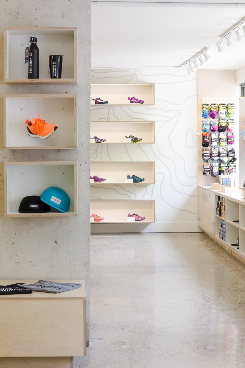 “A brand with style and simplicity that was built on friendships and the stories we create together in this community.” That pretty much says it all. Vancouver Running Company represents our favourite type of commercial client — crystal-clear vision and tons of heart. We took a small, choppy, and thoroughly dated space and turned it into a clean, modern community hub that’s brilliantly functional for a local brand with real soul. Custom millwork provides a clean backdrop for brightly coloured merchandise, while central displays roll out of the way for evening yoga sessions. The shoe wall anchors the space and doubles as the store’s most photographed feature. Every decision was made to serve the community first and the commerce second — which is exactly how VRC operates.